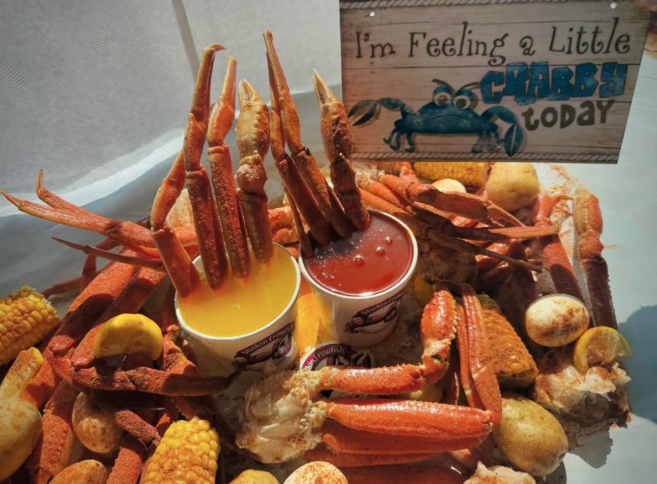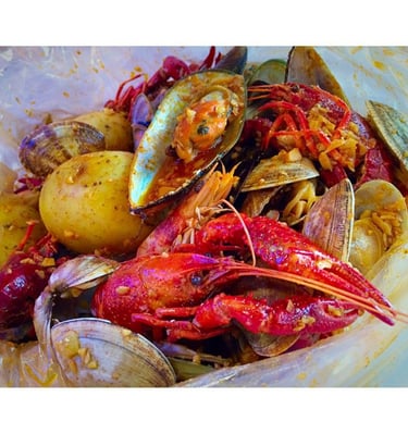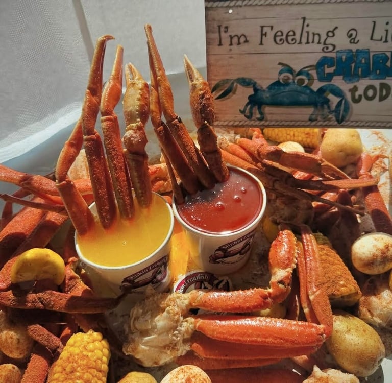 Join us at Stinkin Crawfish Paramount for happy hour and fresh Cajun seafood in a lively, modern setting.